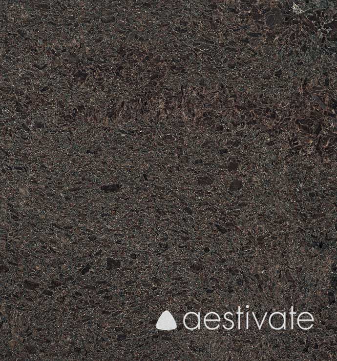 Dieser mittelkörnige dunkelbraune Granit ist durch seine bräunlich-Silber irisierenden Feldspäte gut von anderen zu unterscheiden. Café Imperial, auch bekannt als Brown Pearl oder Marrom Perola, ist ein dunkelbrauner Syenit, der durch langsame Abkühlungsprozesse von Magma in der Erdkruste entstanden ist. Als Teil der Syenit-/Monzonit-Familie ist er eng verwandt mit anderen Tiefengesteinen. Ursprünglich aus Brasilien stammend, zeichnet er sich durch seine dynamische Oberfläche aus, die jedem Raum eine besondere orientalische Lebendigkeit verleiht. Doch auch als Akzent in Ihrem Zuhause entfaltet der Naturstein seine schöne Wirkung. Durch die satinierte Oberflächenbearbeitung erhält der Stein einen sanften Glanz und betont seine interessante Oberflächenstruktur.