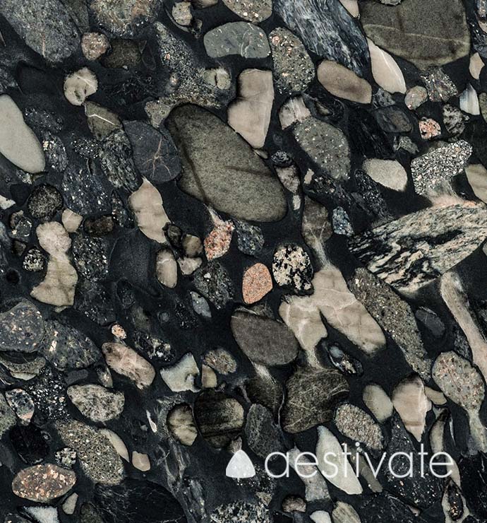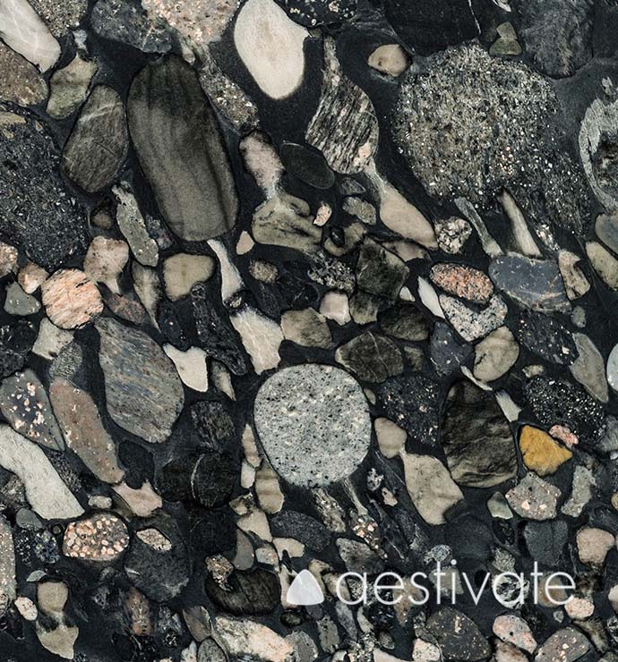 Das einzigartige Erscheinungsbild dieser Natursteinfliese ist unverwechselbar, und in jedem Haus ein echter Hingucker. Gerölle unterschiedlichster Gesteine, haben diesen Stein über Jahrhunderte geformt und ihm sein ausgewogenes Farbspektrum von weiß bis dunkelgrau verliehen. Die dunkelgraue bis schwarze, feinkörnige Matrix lässt die verschiedenen Gesteine hervorstechen. Ein perfekter Hingucker für ihr Zuhause und mit Sicherheit ein Merkmal, über welches Ihre Besucher staunen werden.