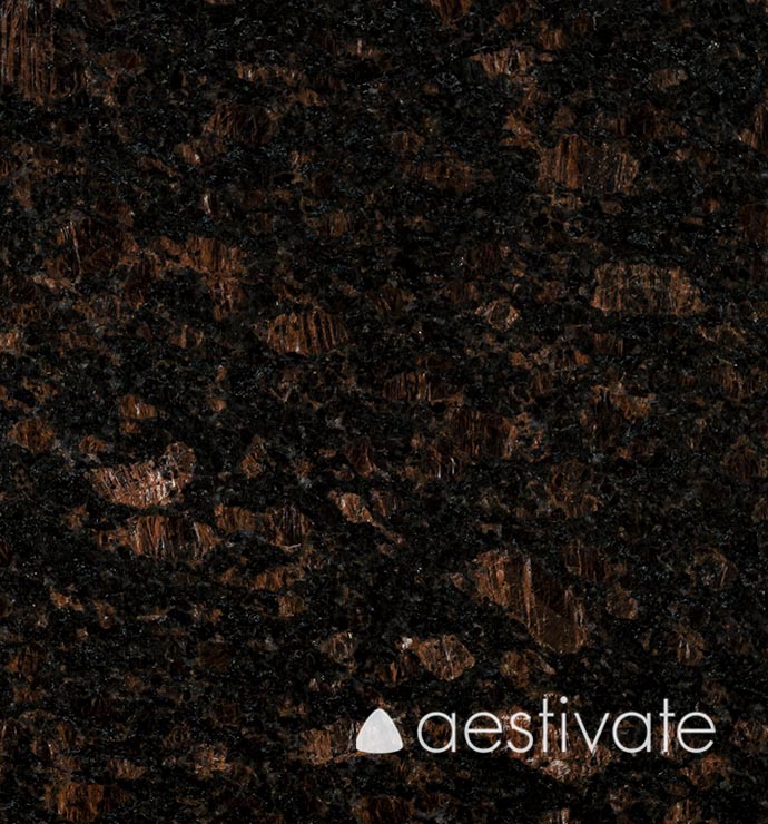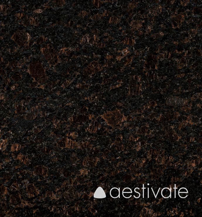 Dieser warme Naturstein trägt die Handelsbezeichnung “Tan Brown”, für einen schwarzbraunen Granit indischer Abstammung. Seine zahlreichen Risse und Knauer reichen von einer Größe von 1-7 cm und erscheinen auf dem dunklen Untergrund in einem braun bis rötlichen Farbton. Dies ist das Wiedererkennungsmerkmal dieses Gesteins.