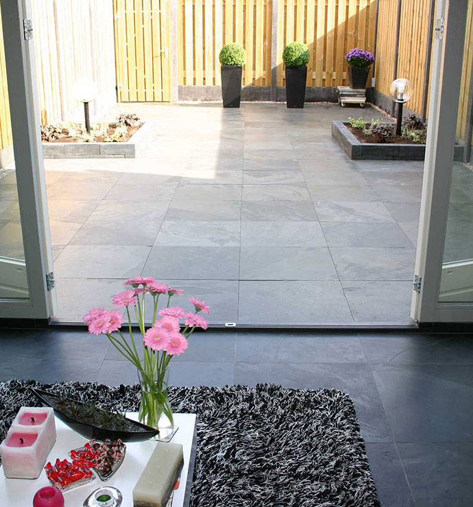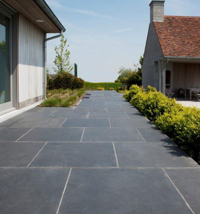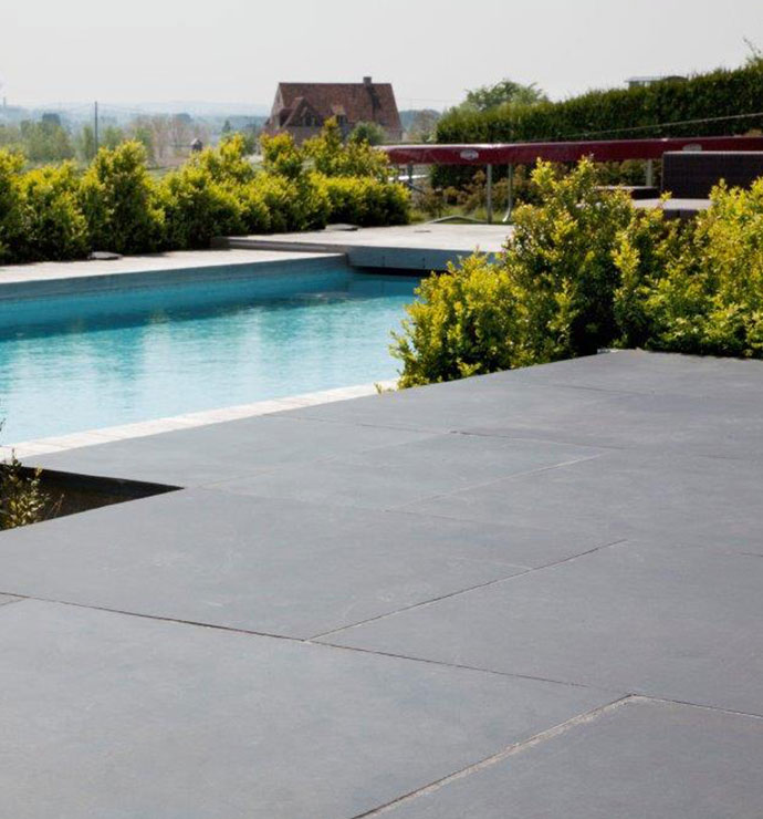 Da der Preto do Cavalo hervorragende technische Eigenschaften besitzt, kann man diesen Naturstein bedenkenlos im Außenbereich einsetzen. Ob nun als Gehwegplatten hinführend zum Haus oder in den Garten, oder auch die großflächige Verlegung als Terrasse oder um den Pool herum. Der dunkle Farbton ist in jedem Außenbereich ein Eyecatcher und verwandelt Ihren Garten in einen modernen und hochwertigen Rückzugsort. Die perfekte Grundlage für die nächste erfolgreiche Gartenparty.