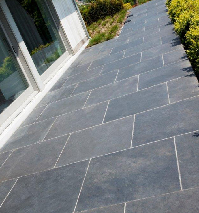 aufgrund der spaltrauen Oberfläche bietet der Naturstein Halt bei Nässe