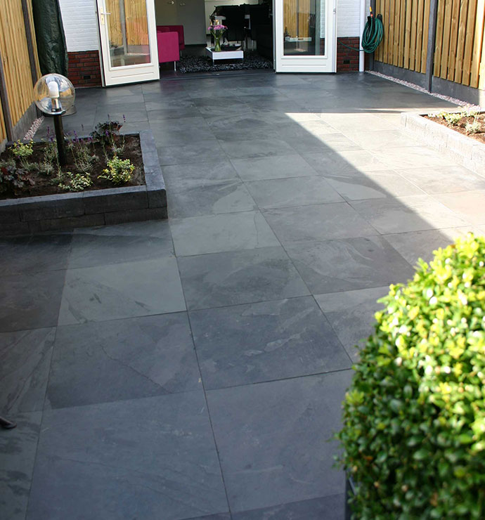 Der Preto do Cavalo ist als Naturschiefer mit einer einmalig dunkel-schwarzen Farbe. Elegant und wunderbar kombinierbar mit allen Farben lässt sich dieser Naturstein unkompliziert in alle Außengestaltungen einfügen. Schiefer besitzt die natürliche Eigenschaft, seine Umgebung sehr modern und elegant wirken zu lassen. Seine Trittsicherheit und Rutschfestigkeit erhält der Naturstein durch den Prozess des Abspaltens innerhalb der Steinbrüche.