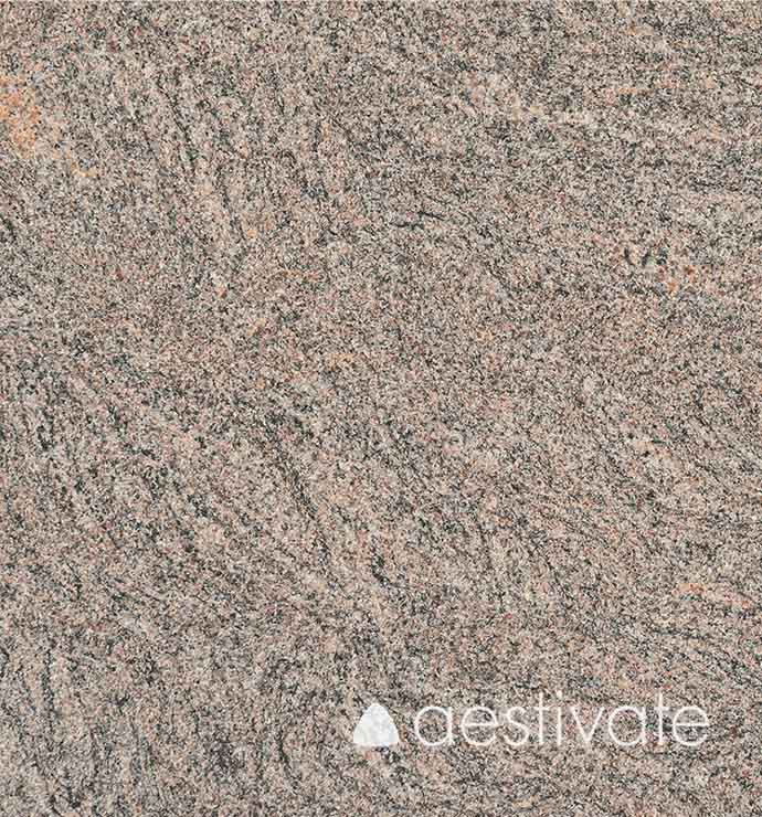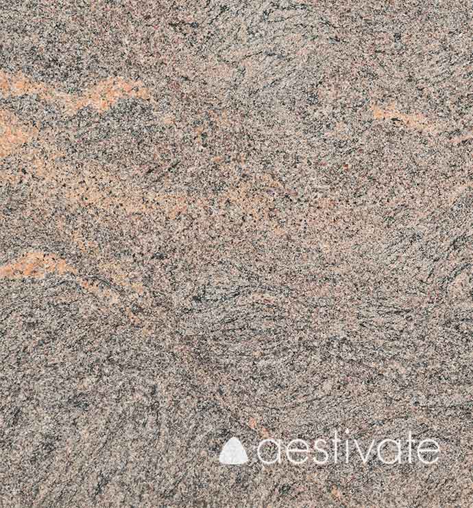 Der intensive Wechsel von grobkörnigeren Lagen mit karminroten bis rotbraunen Feldspäten und grau-schwarz-rötlichen feinkörnigeren Lagen aus Biotit, Quarz und Feldspat bilden ein lebhaftes strukturelles und farbliches Dekor. Je nach Schnittrichtung und Lichteinfall können einzelne Feldspäte leicht irisieren und dem Stein eine lebhafte Struktur verliehen. Das Gestein ist dicht und in seinem technischen Verhalten mit Graniten vergleichbar. Sein robuster Charakter eignet sich perfekt für die Verwendung im Außenbereich. Je nach Charge sind Ton-in-Ton-Schwankungen vorhanden, da Naturstein ein einzigartiges Produkt ist. Jeder Naturstein auf dieser Welt ist ein Unikat und in seiner Form und Farbe nur einmal zu finden.